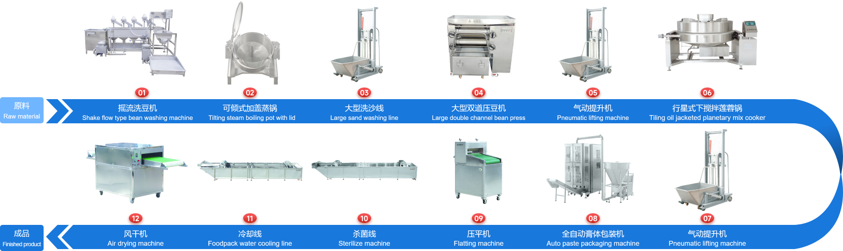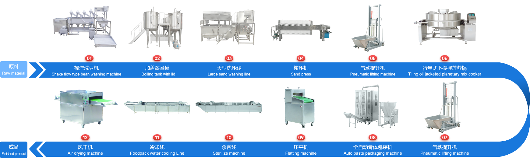 企业经多年研制开发的下搅拌可倾式莲蓉锅、下搅拌夹层铲锅、可倾式蒸煮锅、去皮去核打浆机、立式热抽真空包装机、馅料风干压平机、馅料冷却线、江米条成型机、循环过滤油炸锅、下出料脱油机等设备在国内同类设备中达到绿色环保标准,已报国家专利局和有关部门申请认证,成为企业的品牌产品,深受广大客户的支持和信赖。